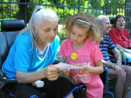 Děti a paní učitelky ze školy v Žirči si opět připravily na konci  školního roku  pro klienty program, aby si vzpomněly,  jaké to bylo ve školních škamnách. Program mívají pěkný, veselý a zábavný.