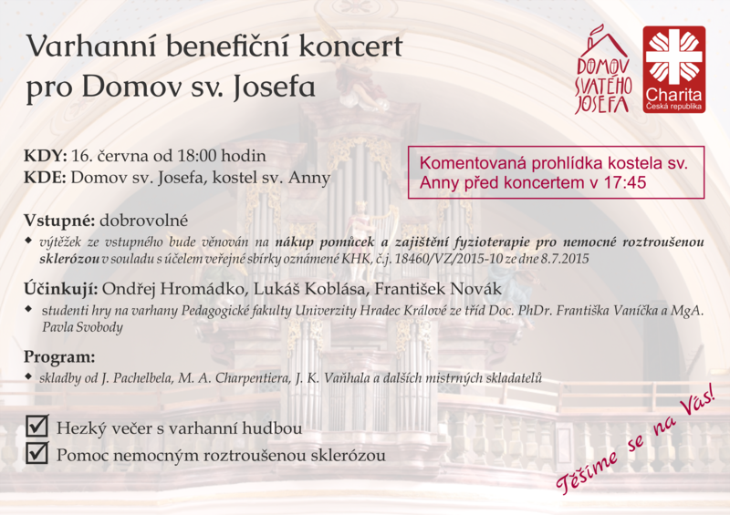 Výtěžek bude věnován na provoz a rozvoj Domova sv. Josefa, konkrétně na nákup pomůcek a zajištění fyzioterapie pro nemocné roztroušenou sklerózou.
